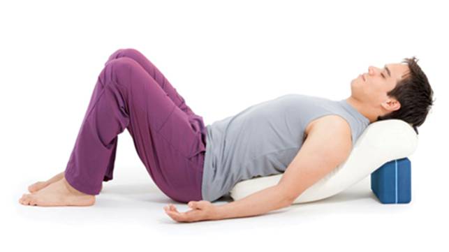 This pose can be particularly soothing after a day behind the desk since it stretches the muscles in the front of the shoulders and chest that tend to get short and tight in forward head posture—particularly the front of the deltoids, subclavius, and pectoralis major and minor. Place a block underneath one end of a bolster so that the bolster rests at a slant. Sitting on the floor with bent knees, bring your sacrum against the lower portion of the bolster and ease yourself back into a comfortable reclining position, arms resting at your sides, palms up. Feel free to cover your eyes with a cloth or a small pillow and use additional blankets, if necessary, to support your head. Set a timer for 5 to 15 minutes, then turn your attention inward, allowing your breath and gravity to help the pose deepen and unfold. Remember, good posture is not just something reserved for yoga class; it can offer profound healing when practiced off the mat, too. Try integrating yoga into your daily life by noticing what’s happening physically, energetically, mentally, and emotionally throughout your day. While you’re at your desk, plan to take a 30-second break every hour to check your posture and watch your breath. After a restroom break, try a few rounds of angel wings and ear-to-shoulder stretches. With awareness and practice, you can find profound relief from neck and shoulder pain, cultivating lasting balance. Sources: Carol Krucoff, E-RYT 500, is a yoga therapist at Duke Integrative Medicine in Durham, North Carolina, codirector of the Therapeutic Yoga for Seniors teacher training, and author of Healing Yoga for Neck and Shoulder Pain. http://www.healingmoves.com/ This article was written in consultation with Matthew J. Taylor, PT, PhD, immediate past president of the International Association of Yoga Therapists. http://www.drmatthewtaylor.com/blog/dr-taylors-yoga-therapy-background/ Portions adapted from Healing Yoga for Neck and Shoulder Pain: Easy, Effective Practices for Releasing Tension and Relieving Pain by Carol Krucoff (New Harbinger, 2010). Photography by Andrea Killam http://andreakillamphotography.com/